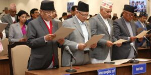 बिहीबार प्रतिनिधि सभाका ज्येष्ठ सदस्य अर्जुननरसिंह केसीले सांसदलाई पद तथा गोपनीयताको शपथ गराउनु भएकाे हाे । उहाँहरूले सिंहदरबारस्थित निर्माणाधीन संघीय संसद्को बहुउद्देश्यीय हलमा शपथ लिनु भएकाे हाे ।