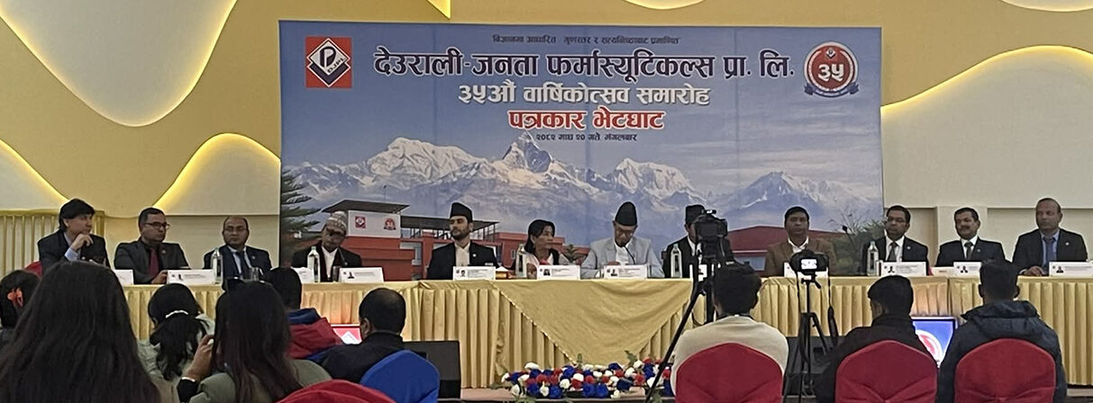 आर्थिक परिवेश२० माघ, काठमाण्डौं । अत्याधुनिक प्रविधिको प्रयोग गरी नेपालमा औषधि उत्पादन गर्दै आएको देउराली जनता फर्मास्युटिकल्स प्रा.लिले औषधि उद्योगमा थप लगानी गर्ने भएको छ । कम्पनीले औषधि उत्पादनको क्षमताविस्तार गरी आन्तरिक खपत बढाउने र निर्यात समेत गर्ने गरी चितवनको भरतपुरमा अत्याधुनिक प्रविधियुक्त औषधि उद्योग स्थापना गर्न लागेको हो । कम्पनीले ३५ औं बार्षिकोत्सवको अवसरमा आयोजना गरेको पत्रकार सम्मेलनमा औषधि उद्योगमा थप ४ अर्ब ७५ करोड लगानी गर्न लागेको जनाएको हाे । चितवनमा बन्ने औषधि उद्योग परियोजना आगामी २ बर्ष भित्रमा निर्माण सम्पन्न गरी उत्पादन शुरु गर्ने लक्ष्य रहेको देउराली जनता फर्मास्युटिकल्स प्रालिका निर्देशक सुरजभक्त पौडेलले पत्रकार सम्मेलनमा बताउनु भयो ।…
