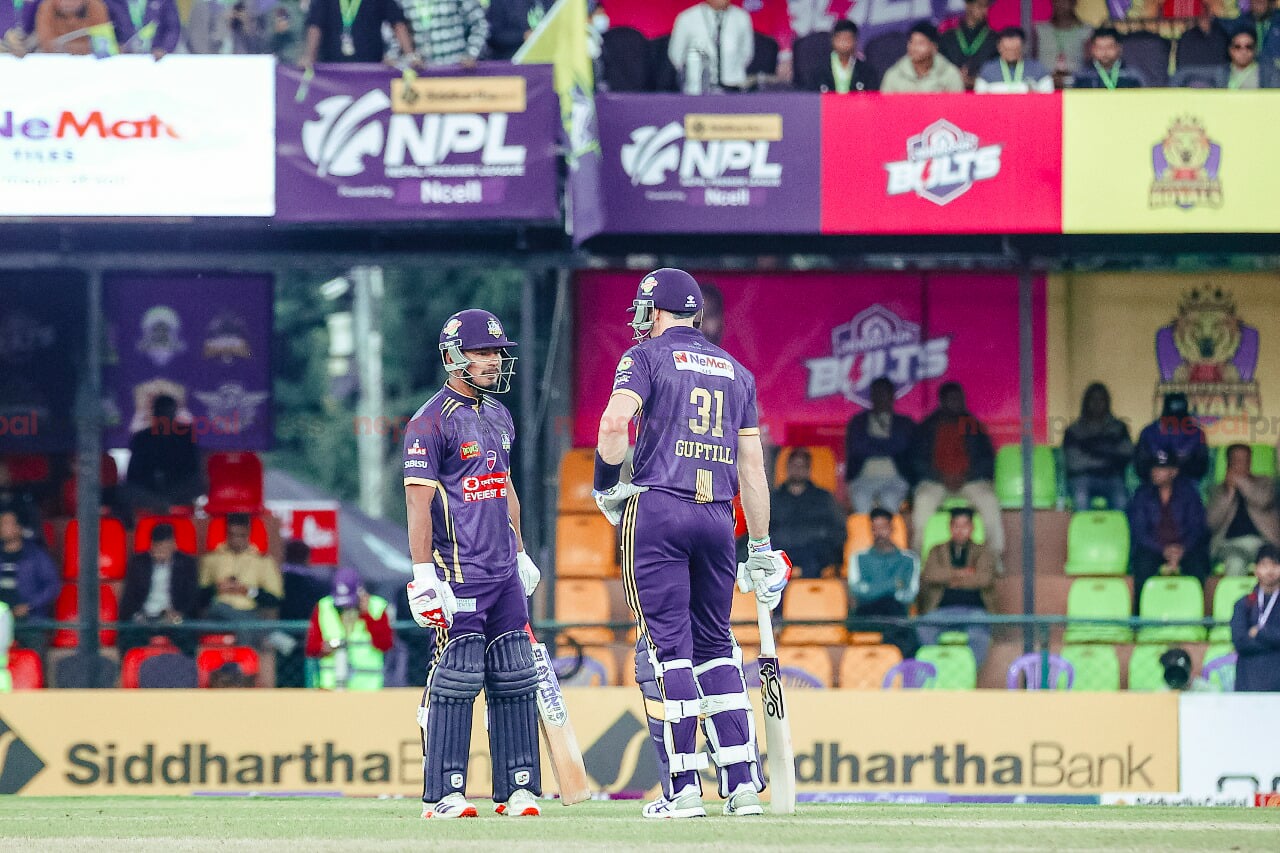 आर्थिक परिवेश०२ मसिर काठमाडौँ । नेपाल प्रीमियर लिग (एनपीएल) सिजन–२ को दोस्रो दिनको दोस्रो खेलमा विराटनगर किंग्सले पोखरा एभेन्जर्सलाई २२१ रनको विशाल लक्ष्य दिएको छ। टीयु क्रीकेट मैदानमा टस हारेर पहिला ब्याटिङ गरेको विराटनगरले निर्धारित २० ओभरमा ६ विकेट गुमाउँदै २२० रन बनायो । विराटनगरका लागि लोकेश बम र मार्टिन गुप्टिलले शतकीय साझेदारी गरे । लोकेश र मार्टिनले दोस्रो विकेटका लागि १२३ रनको साझेदारी गरे। लोकेश ७२ र मार्टिन ६१ रनमा आउट भए । जर्ज मुन्सेले १०, बसिर अहमद २३ र सुभव रन्जाने ३८ रनको योगदान दिए । नारायण जोशी १० रनमा अविजित रहे । बलिङमा पोखराका म्याट टेल्लरले २, कुशल…